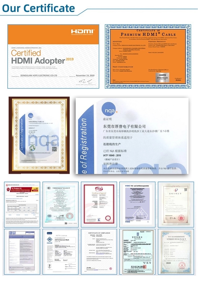 | Certification | Rohs/HDMI Adopter/Premium | |