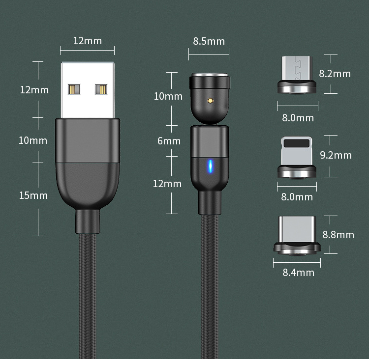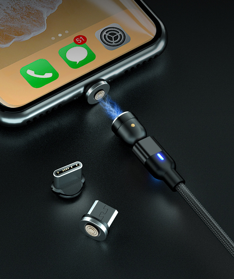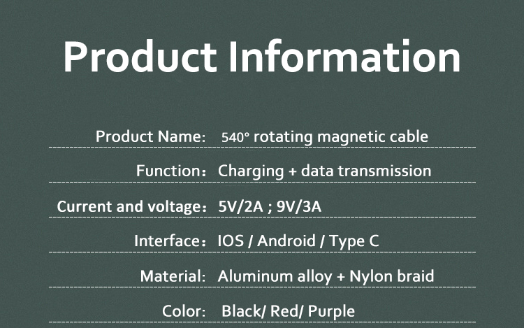540° rotating fast charging 3 in 1 magnetic usb cable Color: Black/Red/Purple